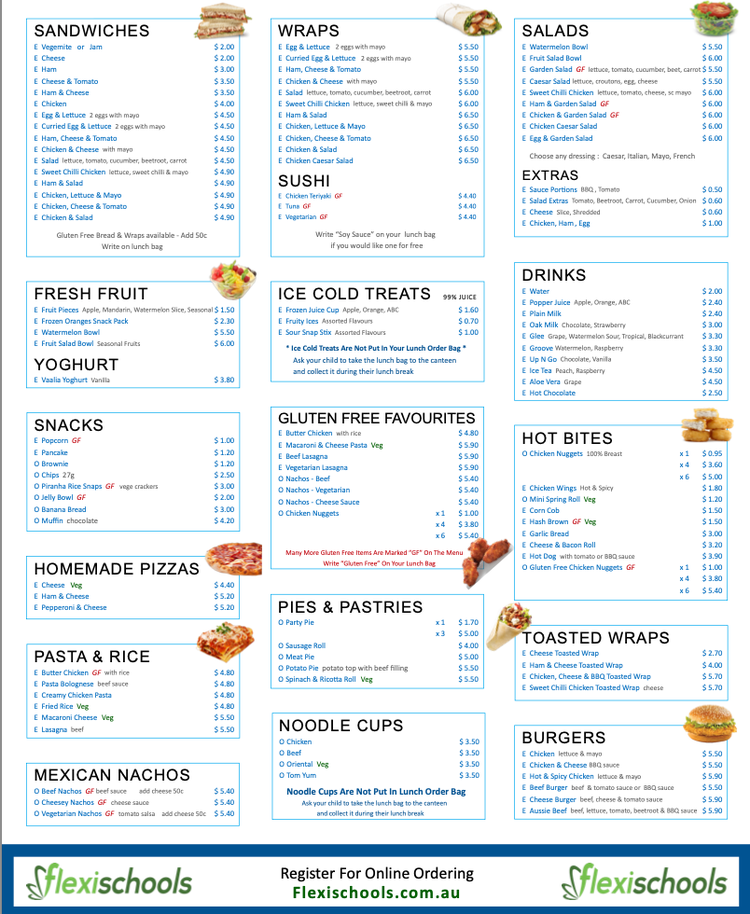 FlexiSchools is a cashless option to order Recess or Lunch and removes the worry of lost change or forgetting to hand in the order. This can be done for any Item on our menu including ice blocks.